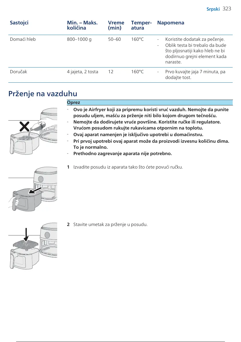 Ovo je Airfryer koji za pripremu koristi vruć vazduh. Nemojte da punite
