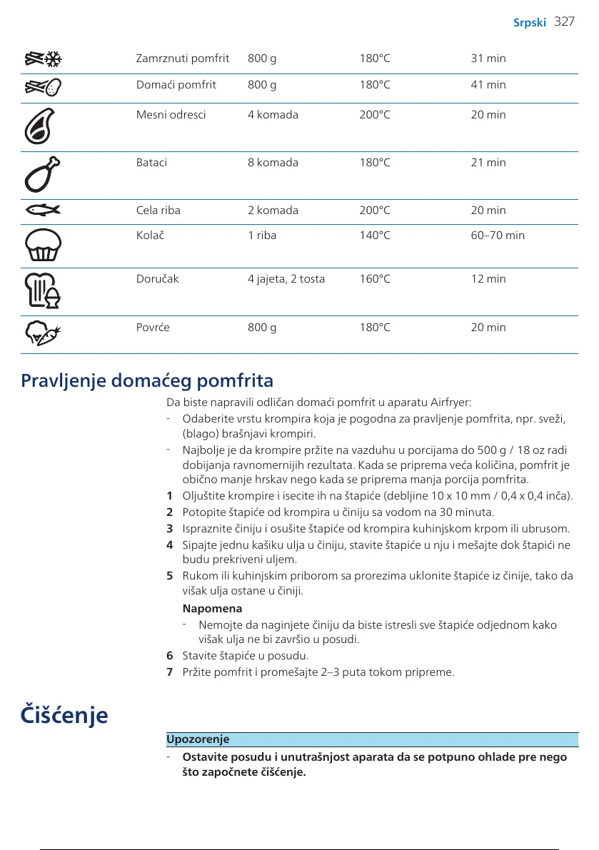dobijanja ravnomernijih rezultata. Kada se priprema veća količina, pomfrit je