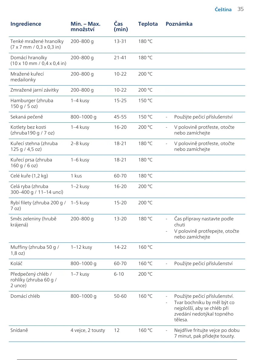 200–800g 13-20 180°C - Čas přípravy nastavte podle