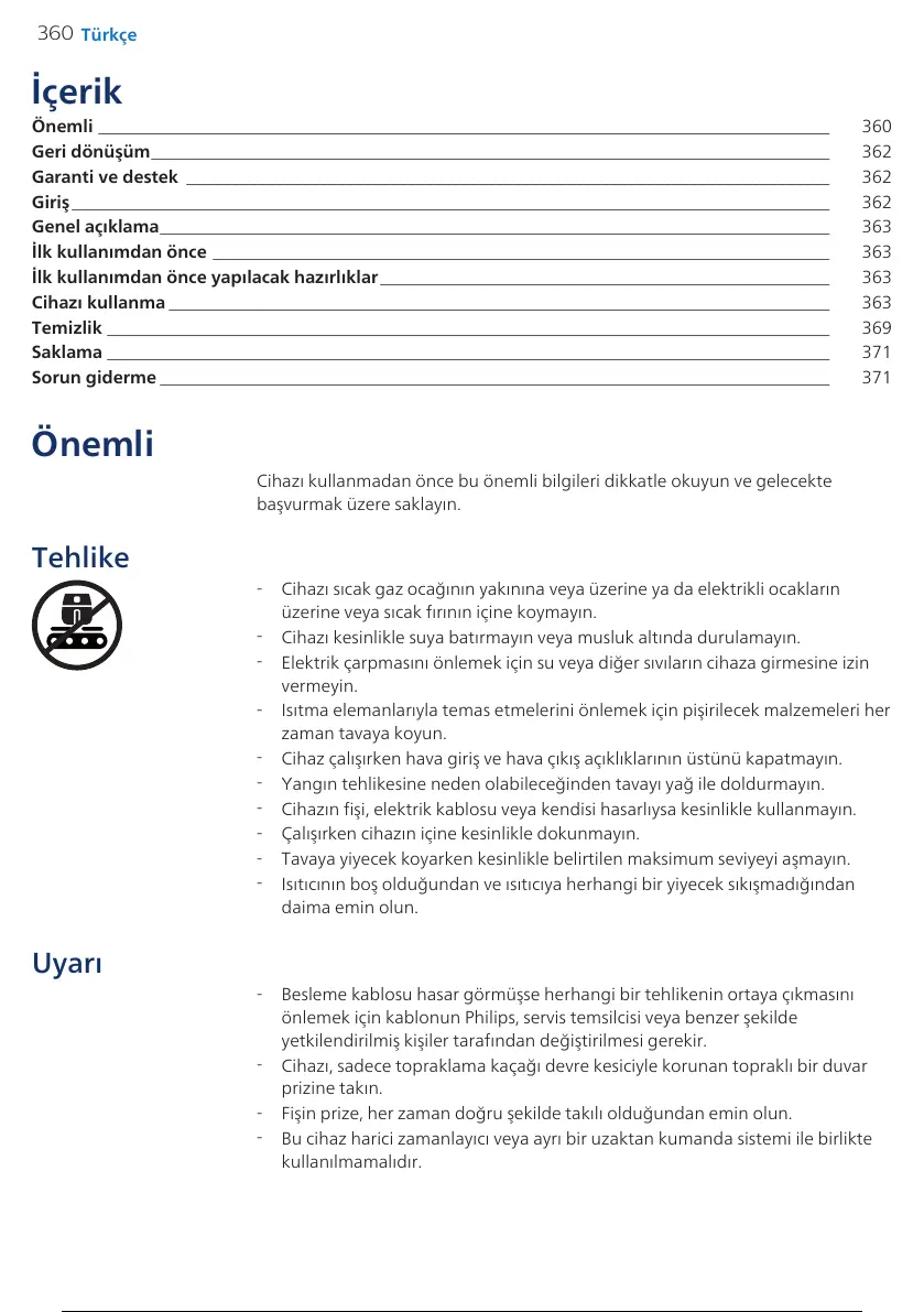 İlk kullanımdan önce ______________________________________________________________________ 363