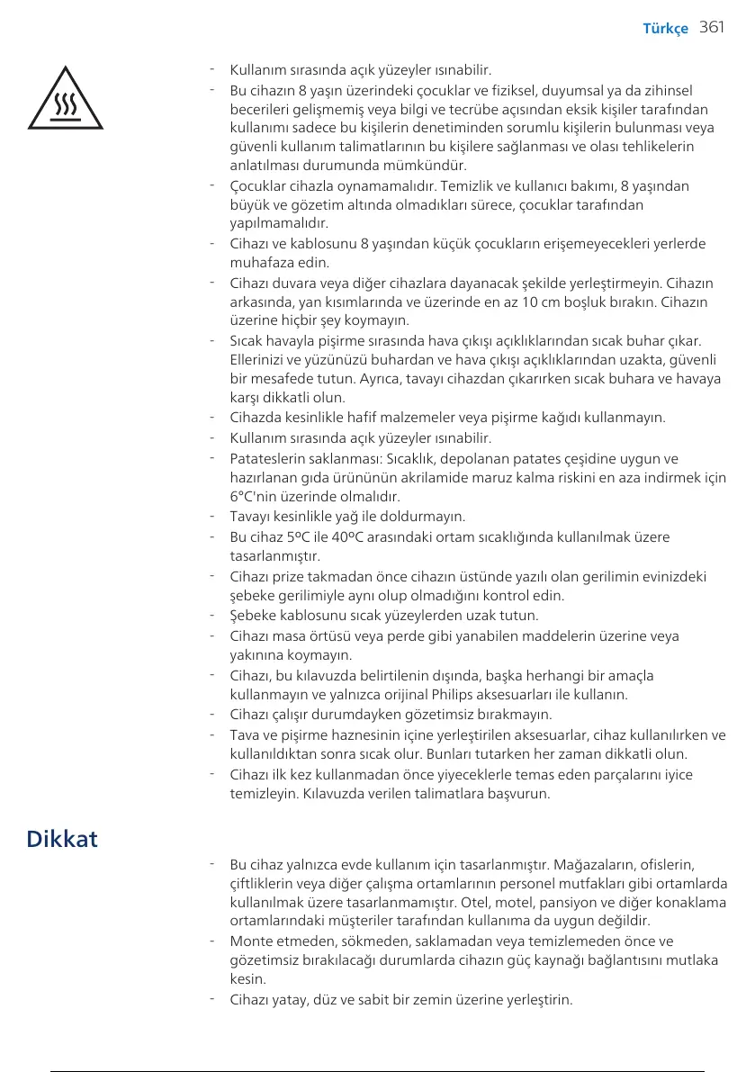 Kullanım sırasında açık yüzeyler ısınabilir.
