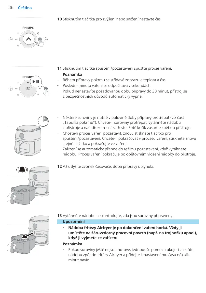 nádobu zpět do fritézy Airfryer apřidejte knastavenému času několik
