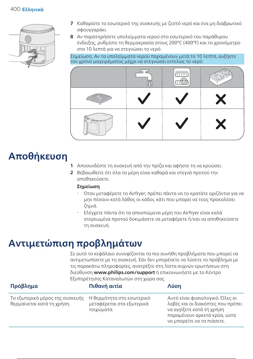 7 Καθαρίστε το εσωτερικό της συσκευής με ζεστό νερό και ένα μη διαβρωτικό