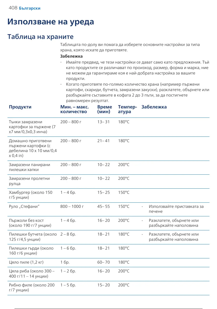 храна, която искате да приготвяте.