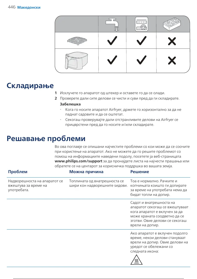 1 Исклучете го апаратот од штекер и оставете го да се олади.