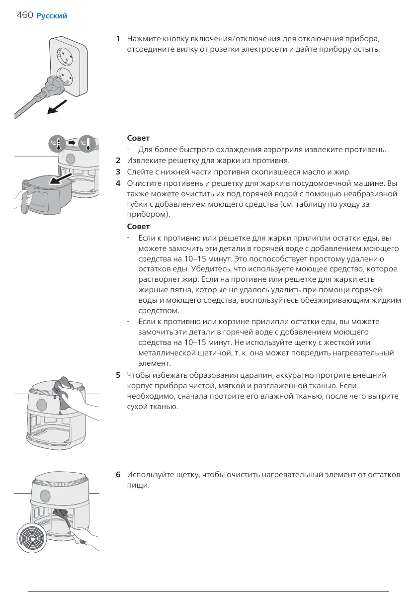 Для более быстрого охлаждения аэрогриля извлеките противень.