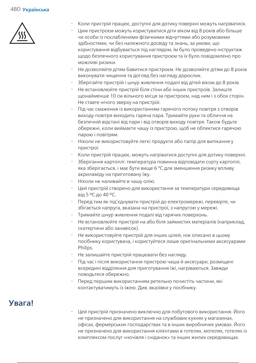 Зберігайте пристрій і шнур живлення подалі від дітей віком до 8років.
