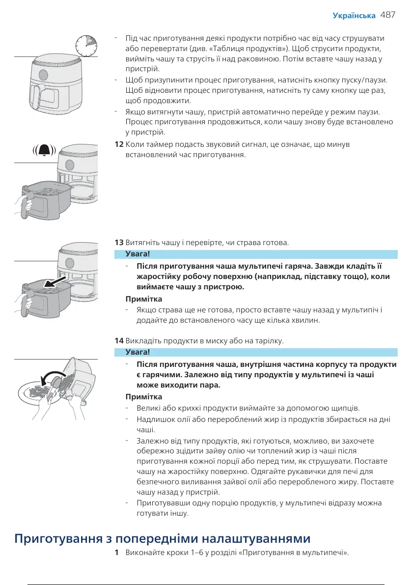 є гарячими. Залежно від типу продуктів у мультипечі із чаші