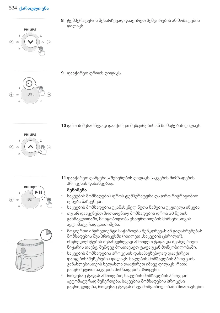 დაწყების/შეჩერების ღილაკს. საკვების მომზადების პროცესის