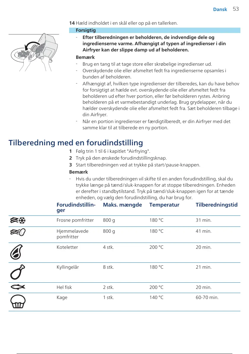 1 Følg trin 1 til 6 i kapitlet "Airfrying".