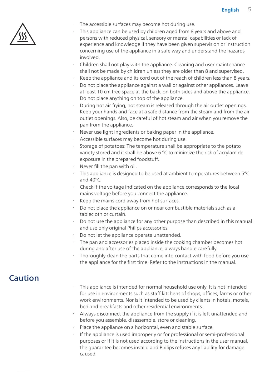 This appliance is designed to be used at ambient temperatures between 5°C