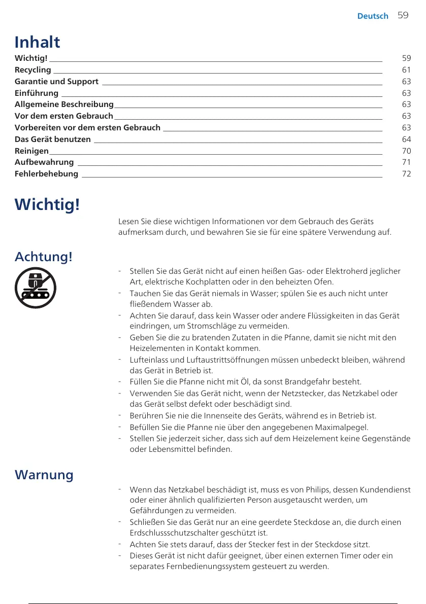 Füllen Sie die Pfanne nicht mit Öl, da sonst Brandgefahr besteht.