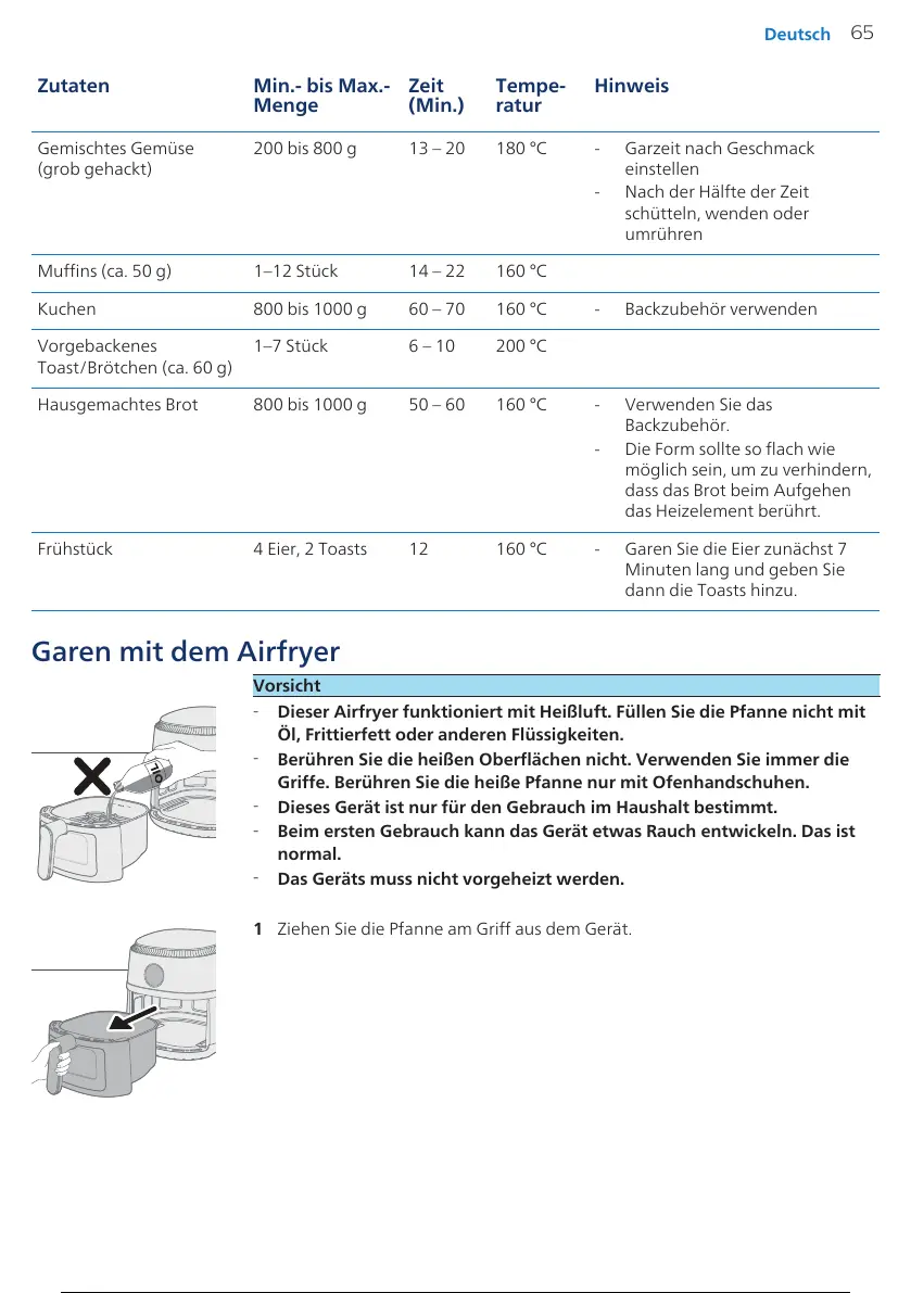 Dieser Airfryer funktioniert mit Heißluft. Füllen Sie die Pfanne nicht mit