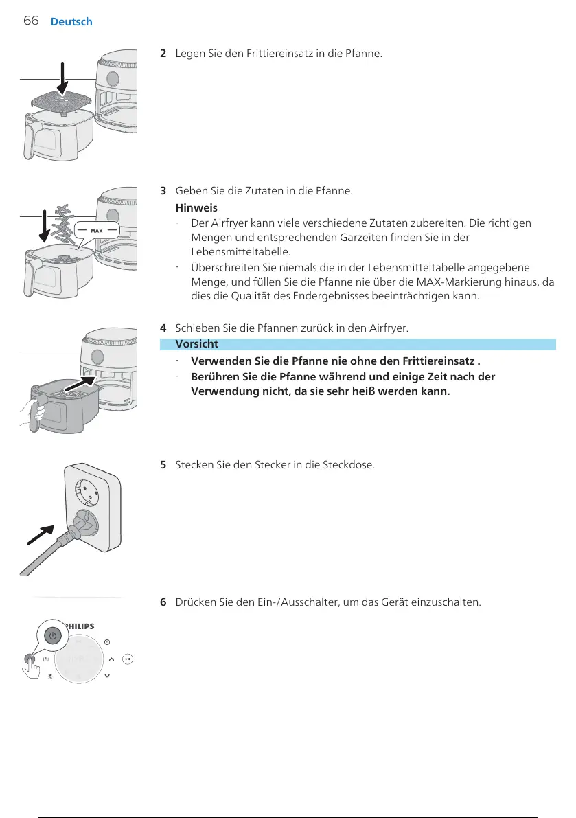 Menge, und füllen Sie die Pfanne nie über die MAX-Markierung hinaus, da