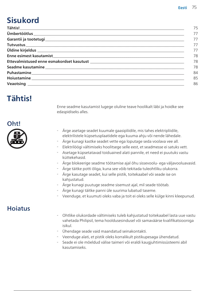 Ärge asetage seadet kuumale gaasipliidile, mis tahes elektripliidile,