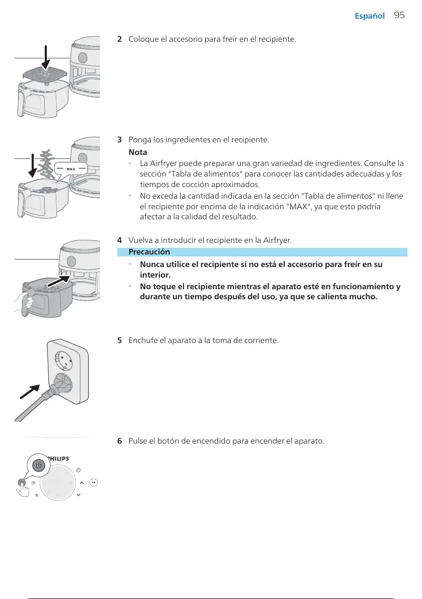 4 Vuelva a introducir el recipiente en la Airfryer.