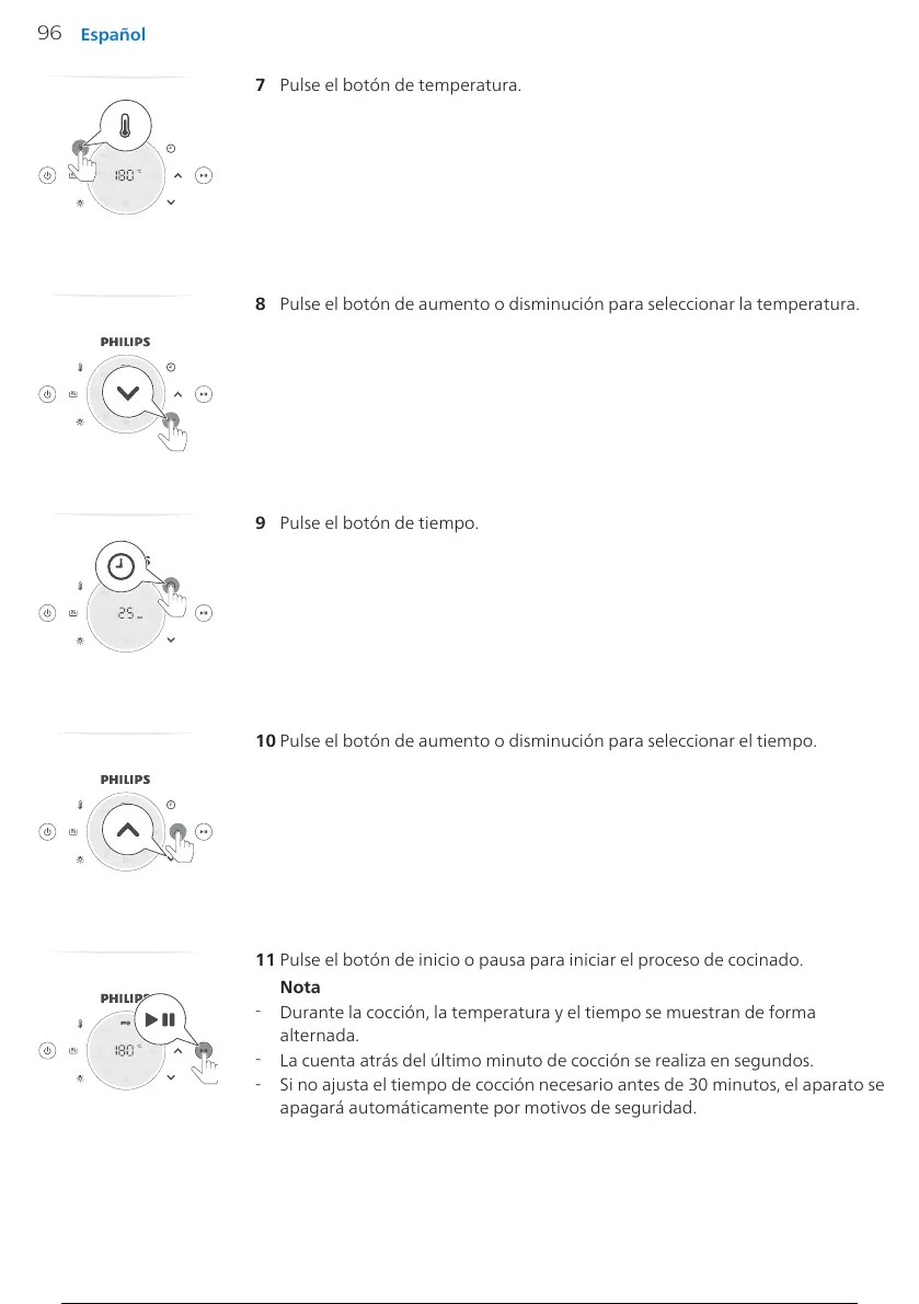 11 Pulse el botón de inicio o pausa para iniciar el proceso de cocinado.