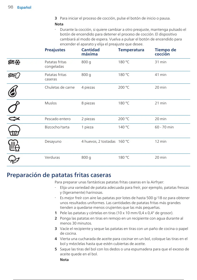 Para preparar unas fantásticas patatas fritas caseras en la Airfryer: