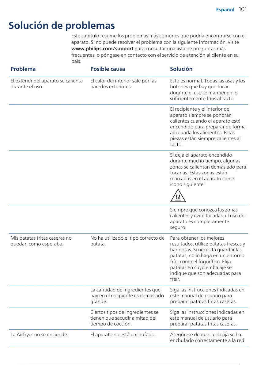 La Airfryer no se enciende. El aparato no está enchufado. Asegúrese de que la clavija se ha