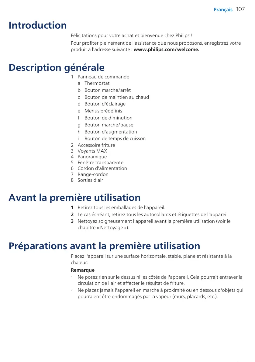 3 Nettoyez soigneusement l'appareil avant la première utilisation (voir le
