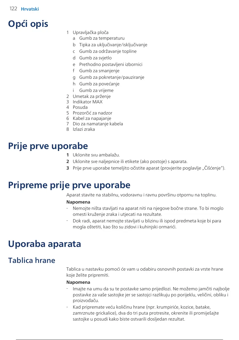 Aparat stavite na stabilnu, vodoravnu i ravnu površinu otpornu na toplinu.