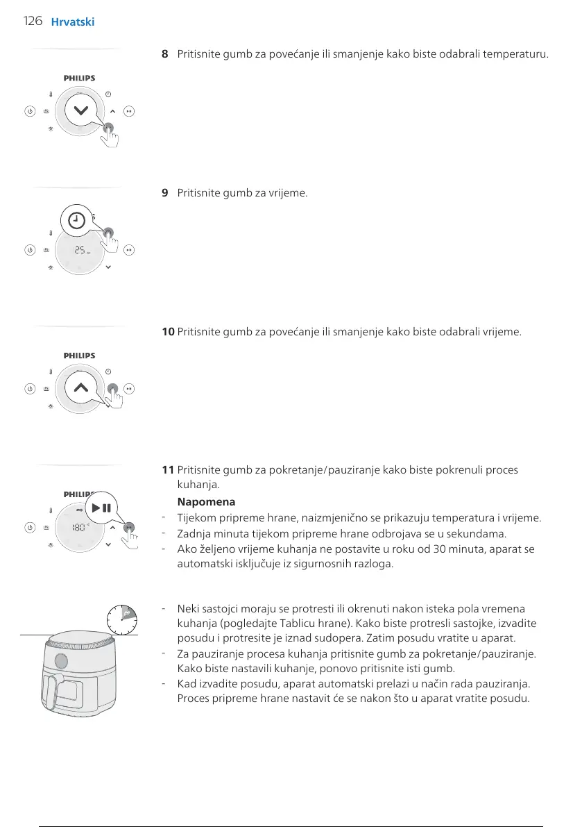 Za pauziranje procesa kuhanja pritisnite gumb za pokretanje/pauziranje.