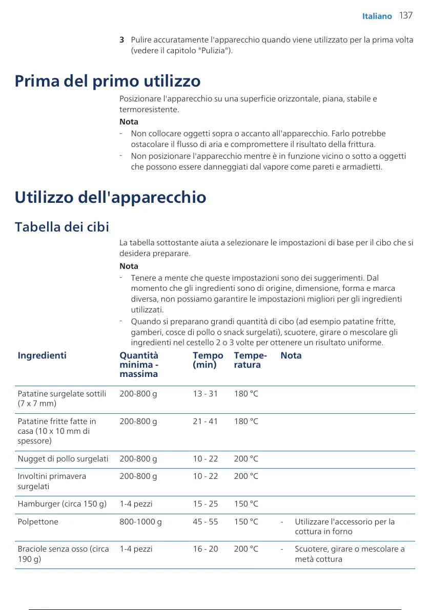 ostacolare il flusso di aria e compromettere il risultato della frittura.