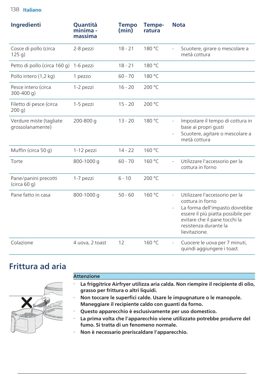 La friggitrice Airfryer utilizza aria calda. Non riempire il recipiente di olio,