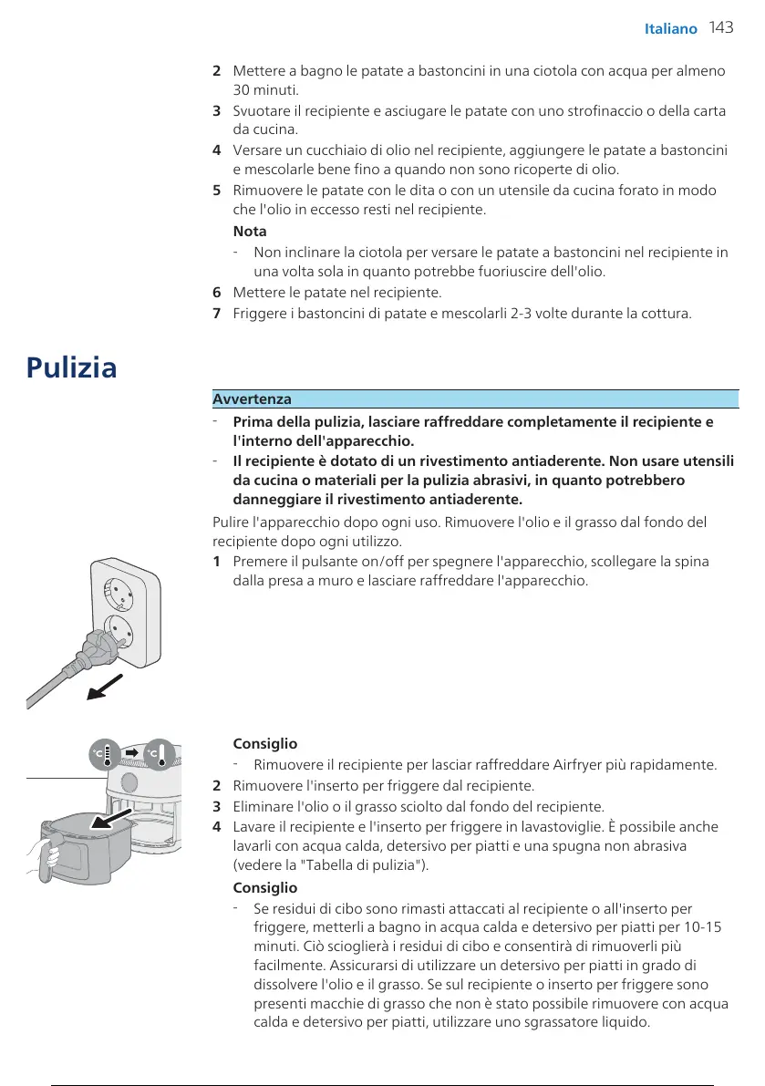 Rimuovere il recipiente per lasciar raffreddare Airfryer più rapidamente.