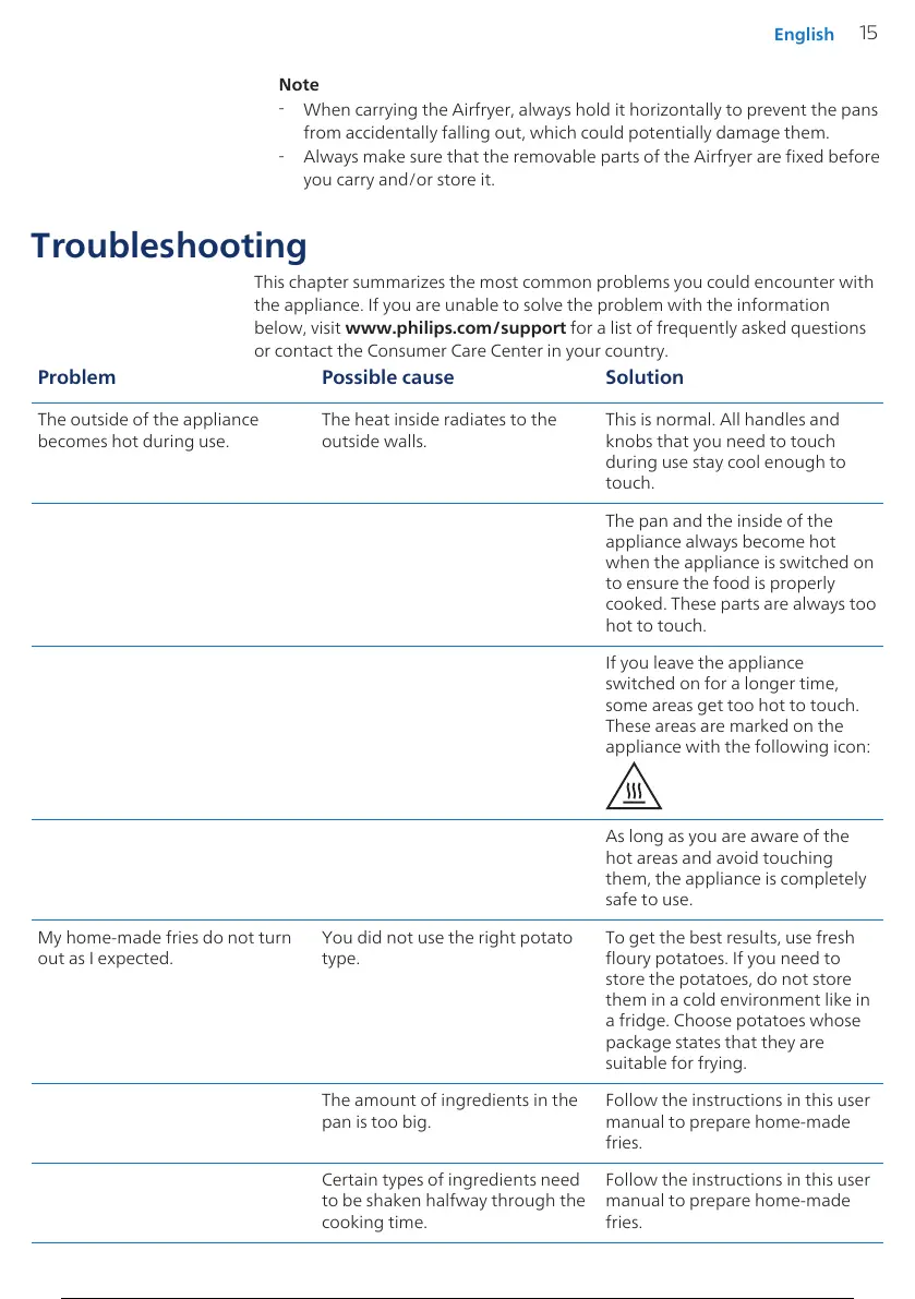 When carrying the Airfryer, always hold it horizontally to prevent the pans