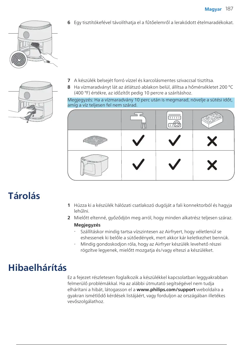 Szállításkor mindig tartsa vízszintesen az Airfryert, hogy véletlenül se