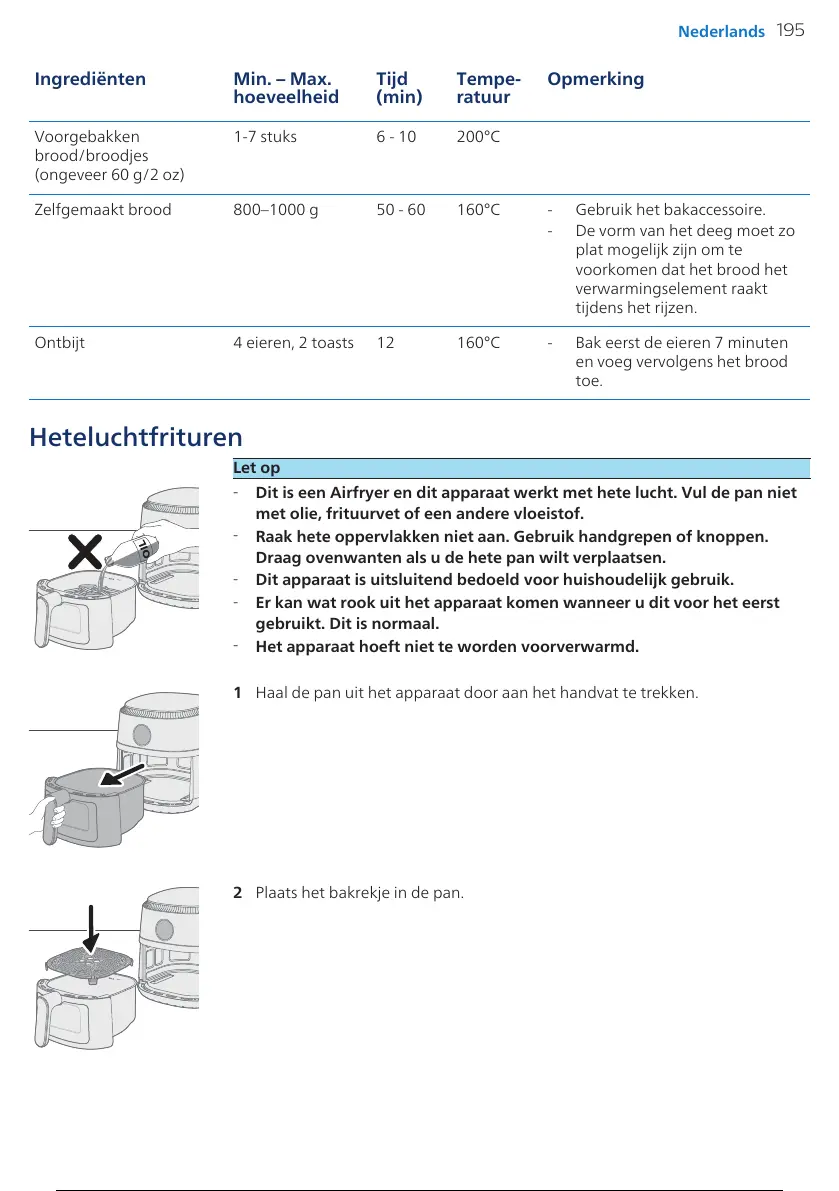 Dit is een Airfryer en dit apparaat werkt met hete lucht. Vul de pan niet