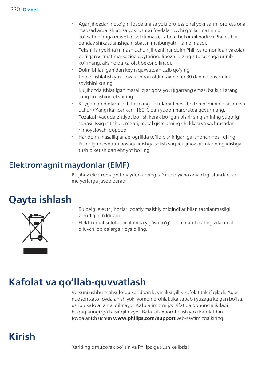 koʻrsatmalariga muvofiq ishlatilmasa, kafolat bekor qilinadi va Philips har