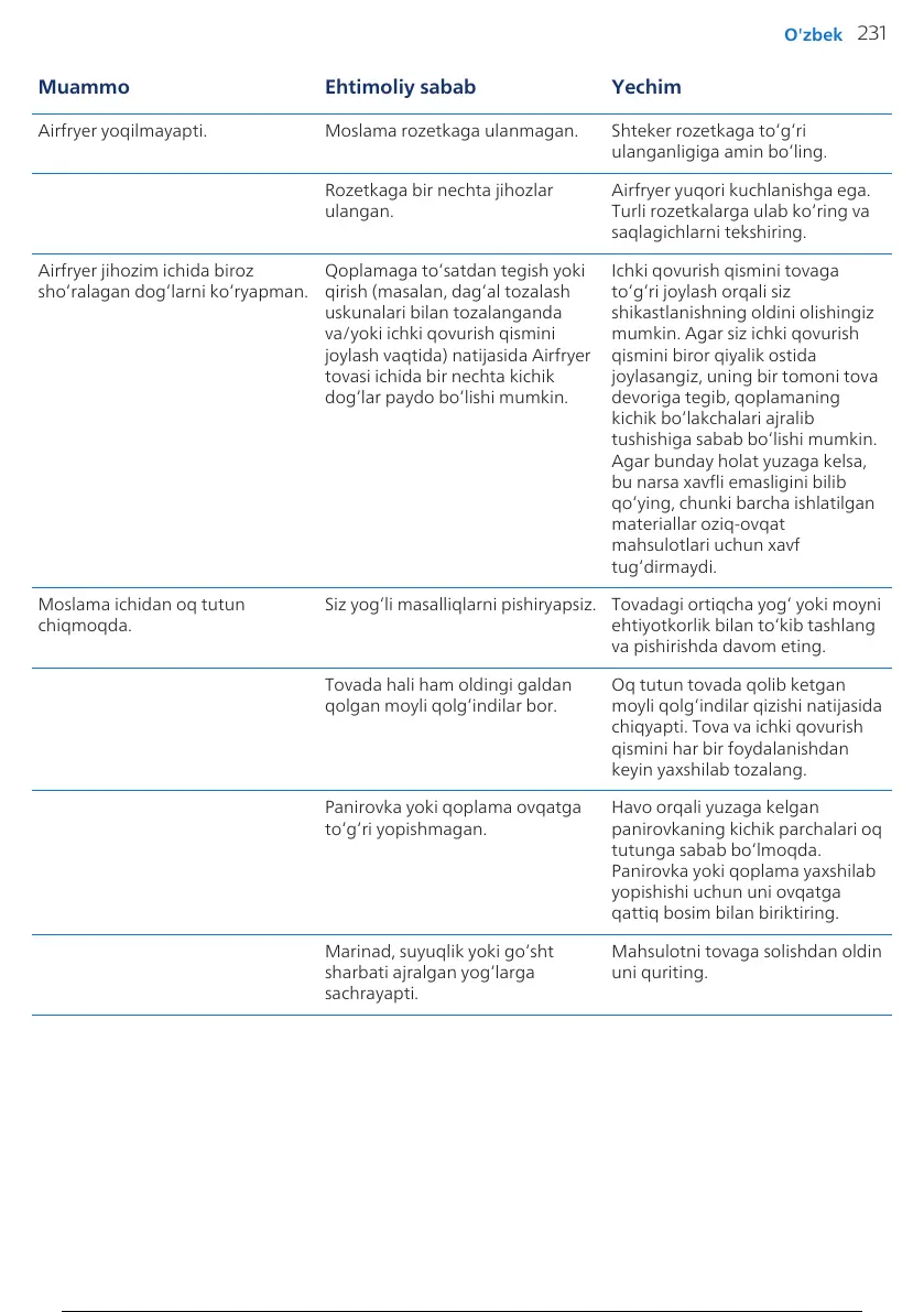 joylash vaqtida) natijasida Airfryer
