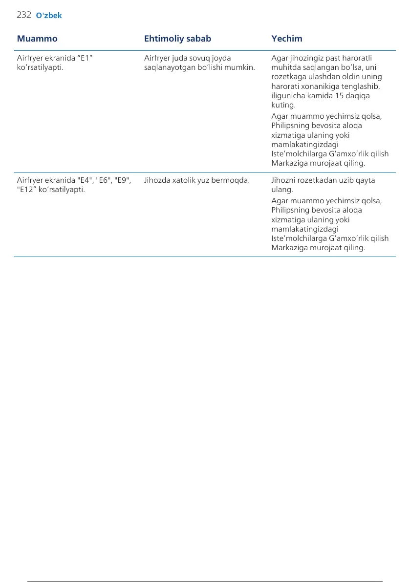 Jihozda xatolik yuz bermoqda. Jihozni rozetkadan uzib qayta