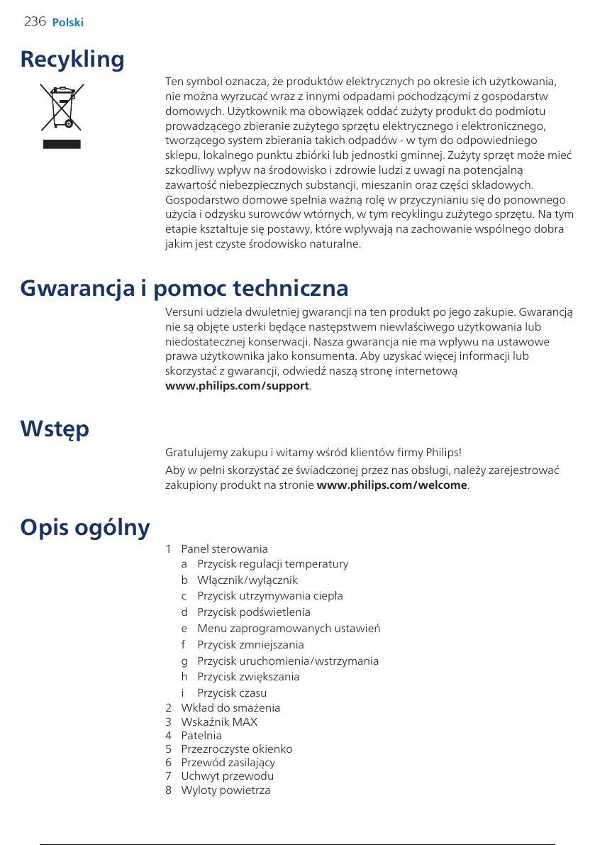 Versuni udziela dwuletniej gwarancji na ten produkt po jego zakupie. Gwarancją