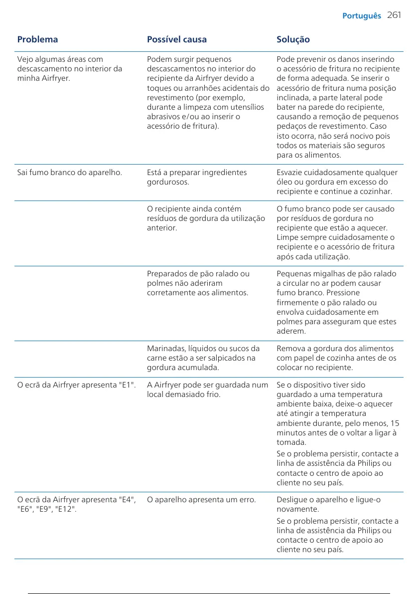 O ecrã da Airfryer apresenta "E1". A Airfryer pode ser guardada num