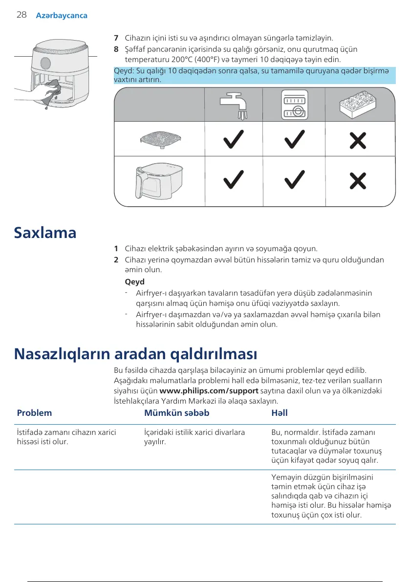 7 Cihazın içini isti su və aşındırıcı olmayan süngərlə təmizləyin.
