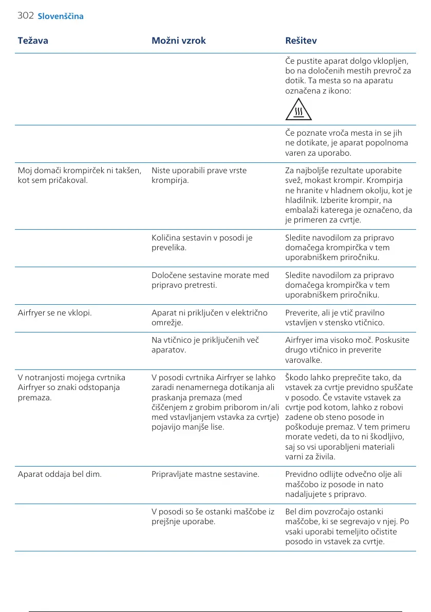 Airfryer so znaki odstopanja