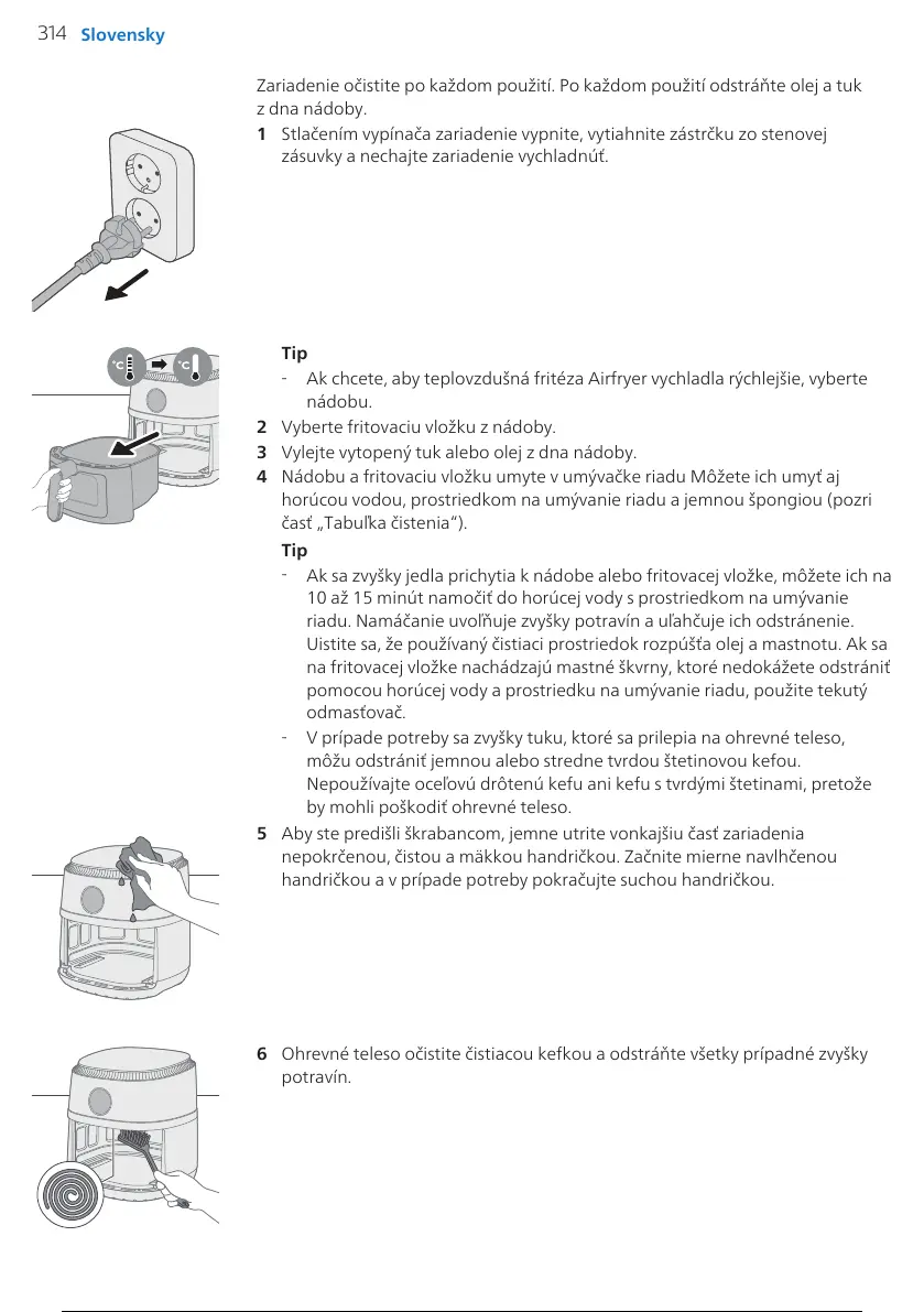 6 Ohrevné teleso očistite čistiacou kefkou aodstráňte všetky prípadné zvyšky