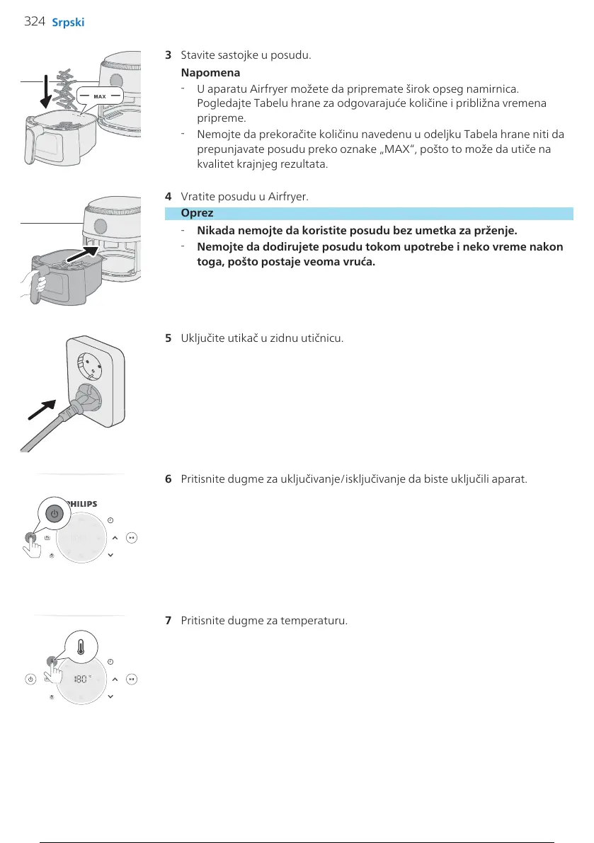 Nikada nemojte da koristite posudu bez umetka za prženje.