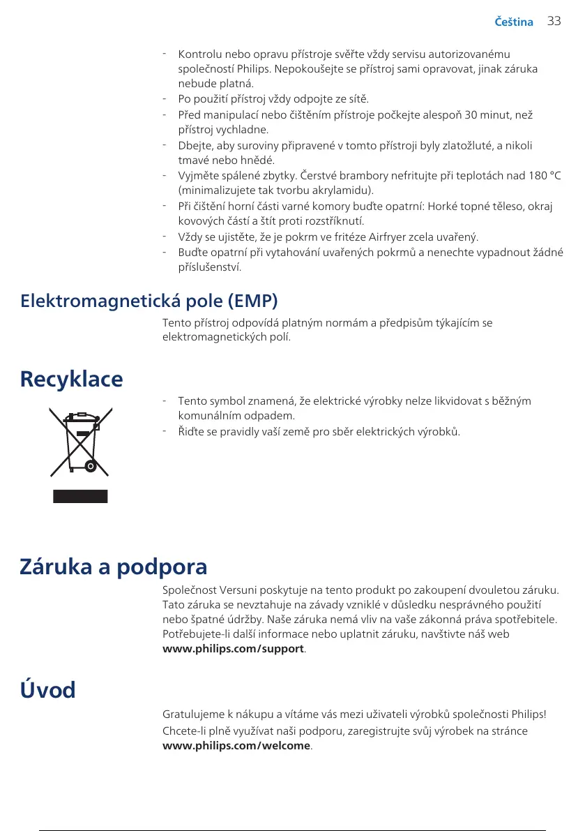 Společnost Versuni poskytuje na tento produkt po zakoupení dvouletou záruku.