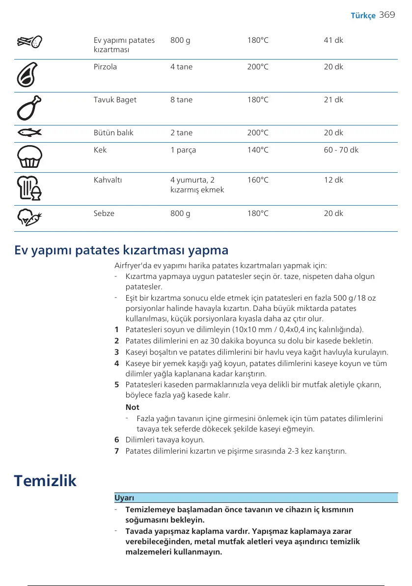 Eşit bir kızartma sonucu elde etmek için patatesleri en fazla 500 g/18 oz