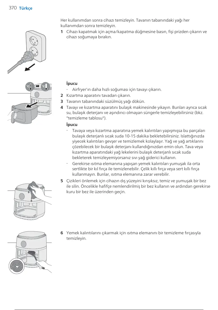 Her kullanımdan sonra cihazı temizleyin. Tavanın tabanındaki yağı her