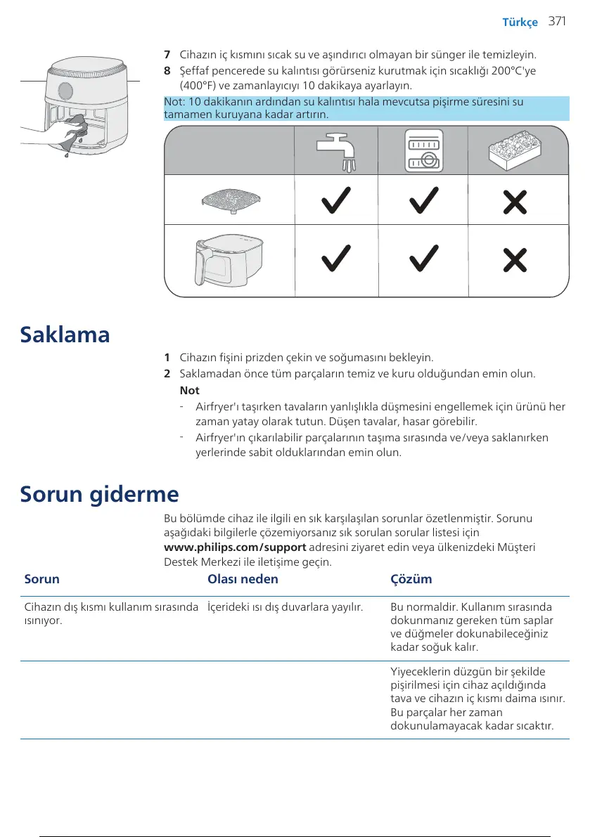 7 Cihazın iç kısmını sıcak su ve aşındırıcı olmayan bir sünger ile temizleyin.