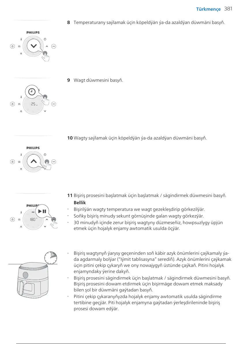 11 Bişiriş prosesini başlatmak üçin başlatmak / sägindirmek düwmesini basyň.