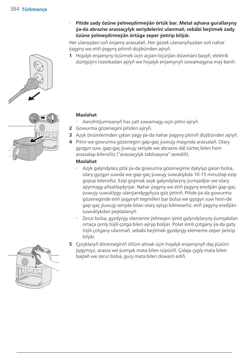 dürtgüjini rozetkadan aýryň we hojalyk enjamynyň sowamagyna maý beriň.