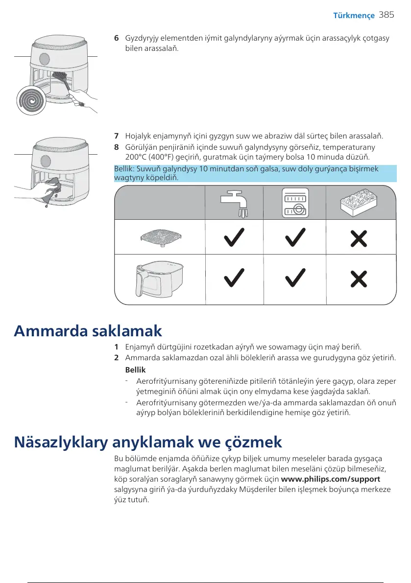 6 Gyzdyryjy elementden iýmit galyndylaryny aýyrmak üçin arassaçylyk çotgasy