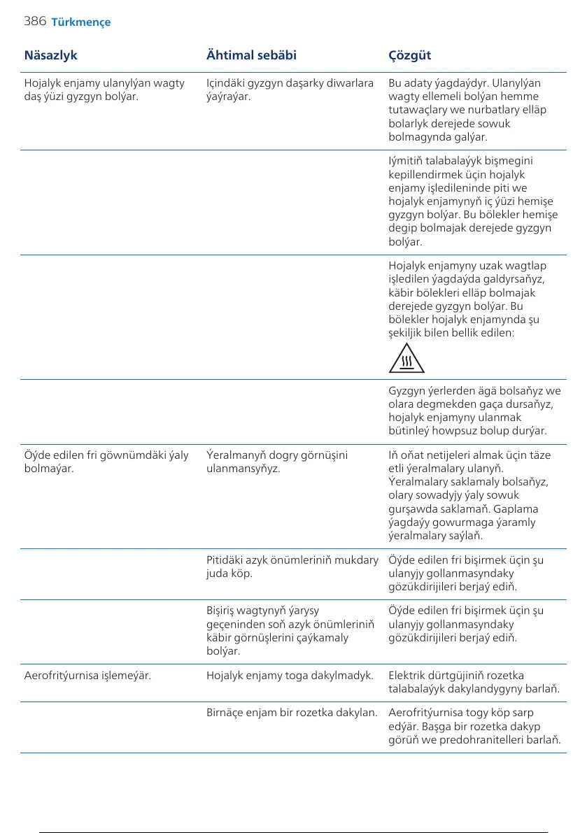 Aerofritýurnisa işlemeýär. Hojalyk enjamy toga dakylmadyk. Elektrik dürtgüjiniň rozetka