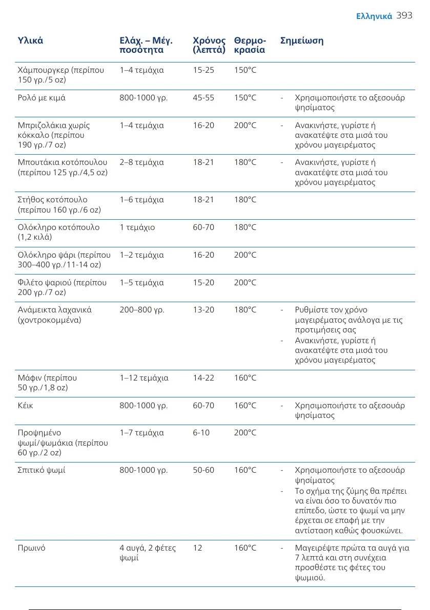 200–800 γρ. 13-20 180°C - Ρυθμίστε τον χρόνο